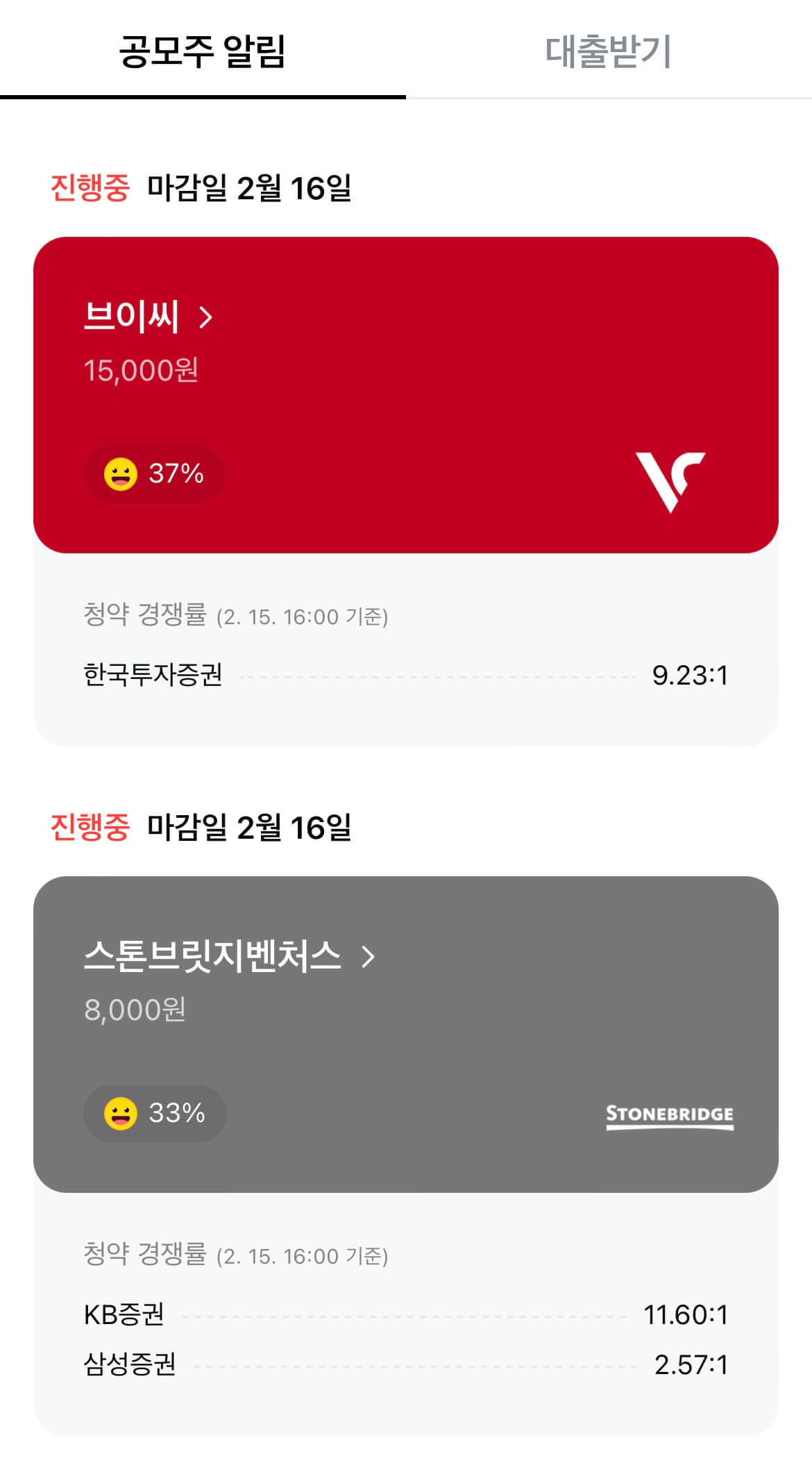 안녕하세요, 카알입니다. 카카오페이에서 공모주 알림설정하시면 공모주일정에 대한 알림받는 거 다들 아시죠? 아침에 알림에 왔는데요. 특이한게 하나 있어 공유하고자 합니다. 이번주 공모주 일정은 아래와 같네요. 2월 둘째주(13-19일) 공모주 일정 상장 16일(수) 인카금융서비스(한국투자증권) 청약 14-15일(월-화) 퓨런티어(유안타, 신한) 15-16일(화-수) 스톤브릿지벤처스(KB, 삼성) 15-16일(화-수) 브이씨(한국투자증권) 15-16일(화-수) 하나금융21호스팩(하나금융투자) 17-18일(목-금) 풍월정밀(대신증권) 출처: https://.tistory.com/380 [Karl21의 탐독耽讀기] 그런데, 오늘 청약마감인 브이씨와 스톤브릿지벤처스가 알림으로 나왔습니다(참고로, … Read more
