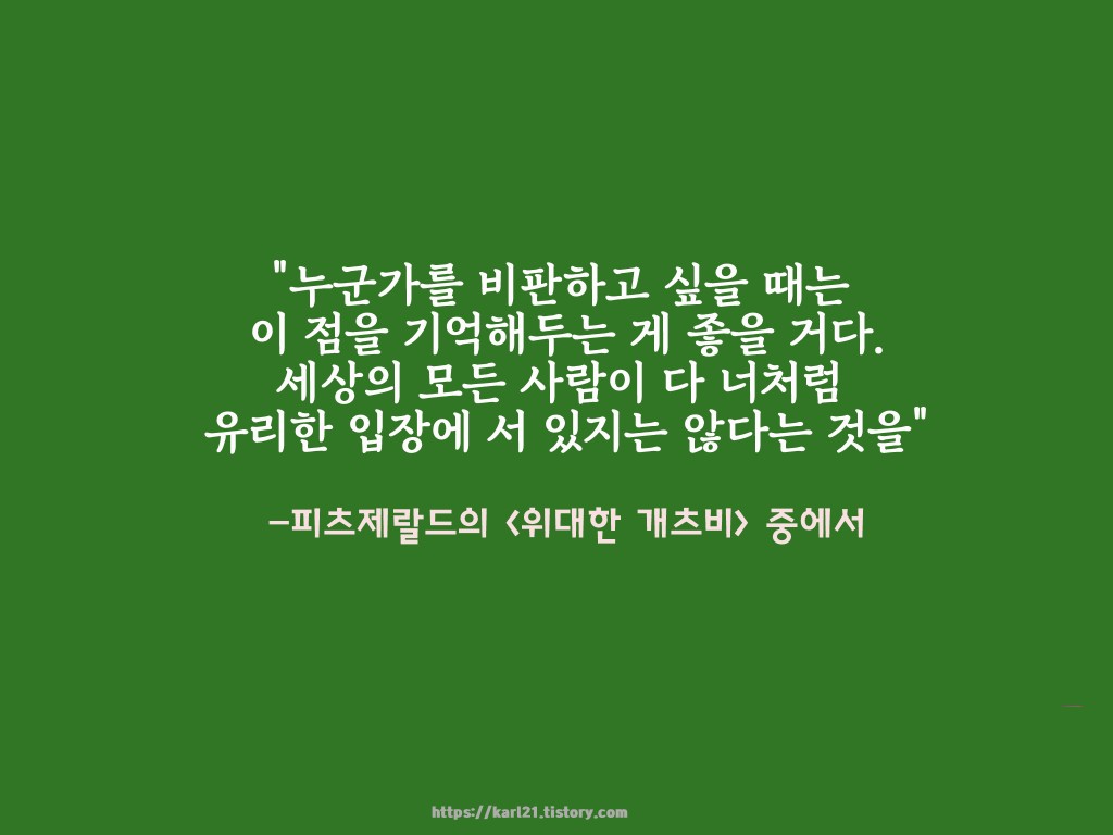 누군가를 비판하고 싶을 때는 이점을 기억해두는게 좋을 거다.