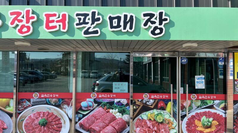 한우고기를 고기 판매장에서 구매해서 식당으로 이동하여 고기를 구워 식사를 할 수 있는 구도인 듯 합니다. 한우는 언제 먹어보 보아도 진리가 아닌가 싶은데요.
