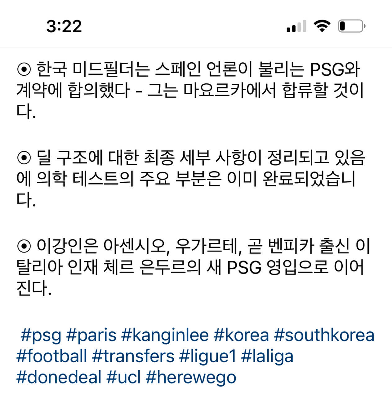 위의 내용은 파브리지오 로마노 기자의 영어 인스타그램 글을 번역한 것인데요. 다 집어치우고 아직 계약은 안 했지만, 거의 다 왔다. 이 정도로 보시면 어떨까 싶은데요.