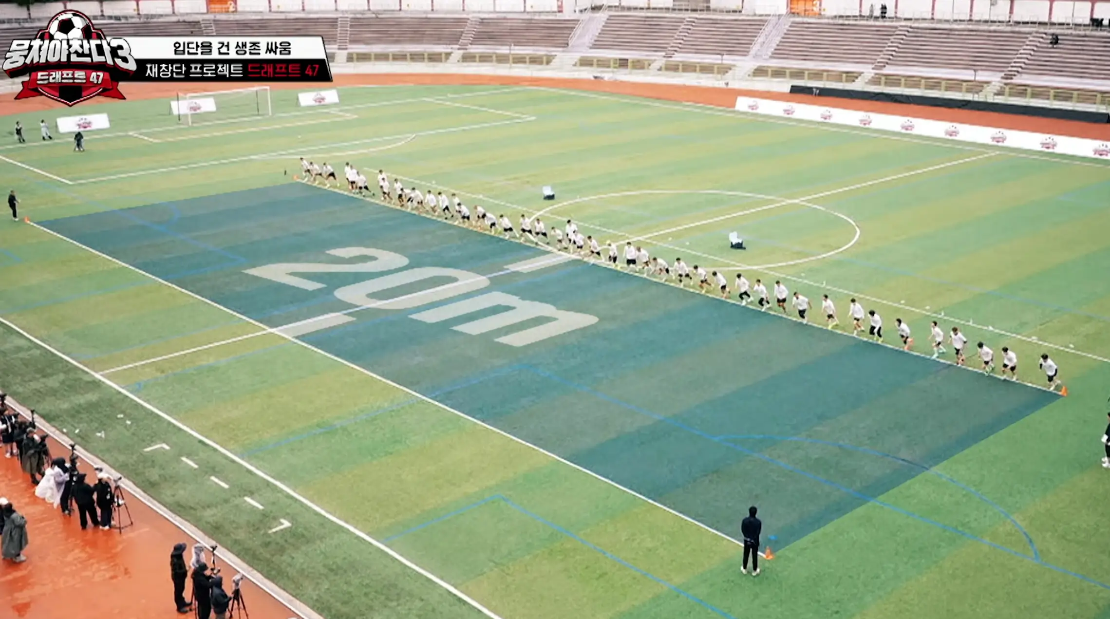 지구력 순발력 회복력을 검증하는 시간이다. 44명의 참가자가 모두 달리며 뭉찬의 현재 선수들과 신입 선수들의 대결에 관심이 모아진다. ‘탈락자 없는 순위결정전’