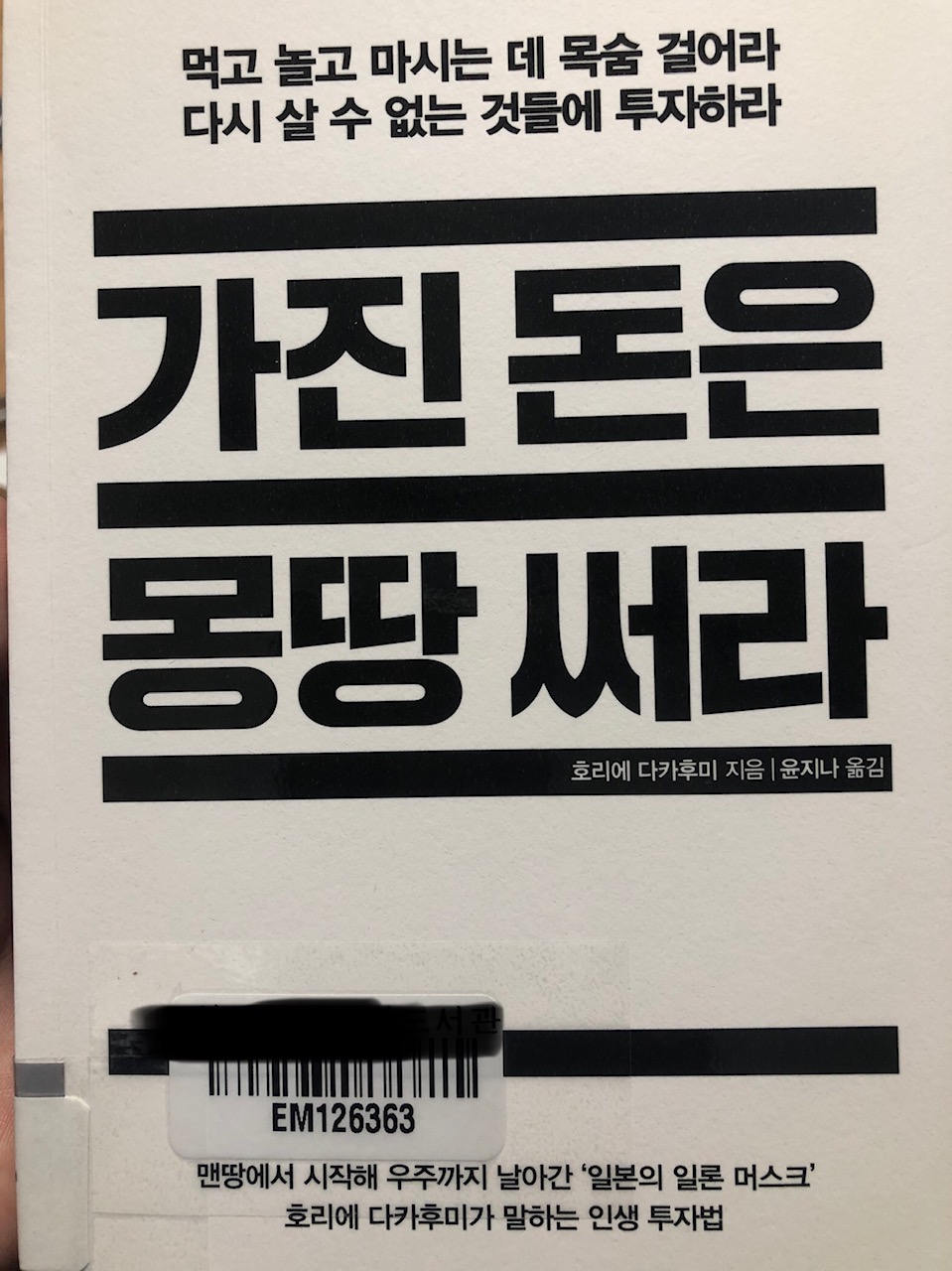 돈이 없고 노후자금이 없는데 불안하지 않는가? 저자는 ‘나는 지갑도 없고 현금도 없다’고 한다. 그리고 한달치 생활비의 여유만을 쟁여두고는 다른 모든 돈은 자신의 경험을 위해 사용한다고 한다. 저자가 주식은 하지 않는다고 하지만, 자신의 꿈을 위해선 투자하는 사람이다. 자신이 믿고 확신한 바가 있다면 그걸 위해 주저없이 돈을 투자하는 타입이다. 그러기에 그가 일본최초 민간 우주비행을 성공시킨 업적을 이루지 않았는가! 그는 돈을 벌고 싶다면 언제든지 벌 수 있는 사람이고 또한 “어려울 땐 빌려라! 자존심을 버리로 머리를 숙여라!”란 철학도 보여준다. 돈이 없다고 그는 불안해하지 않는다. 가진 돈을 몽땅 써도 그는 불안해하지 않는 비결이 무엇인가?