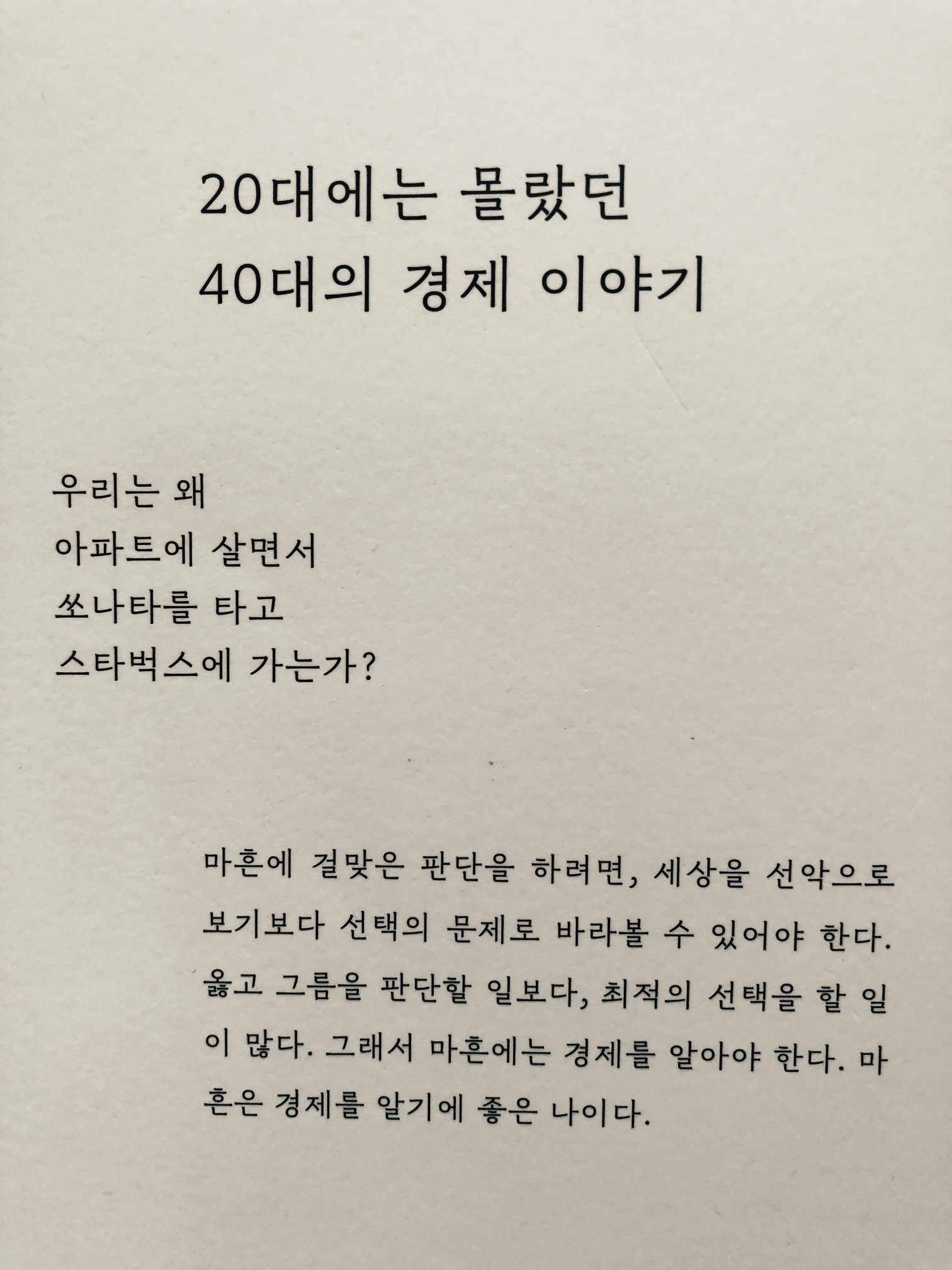 마흔이라는 것은 저자는 ‘경제를 알기 좋은 나이’
