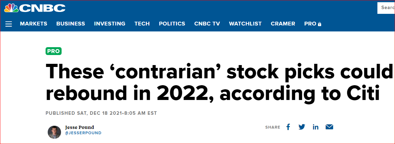 2022년 역발상투자전략: 2021년 하락주 Top5 에 투자하라! |