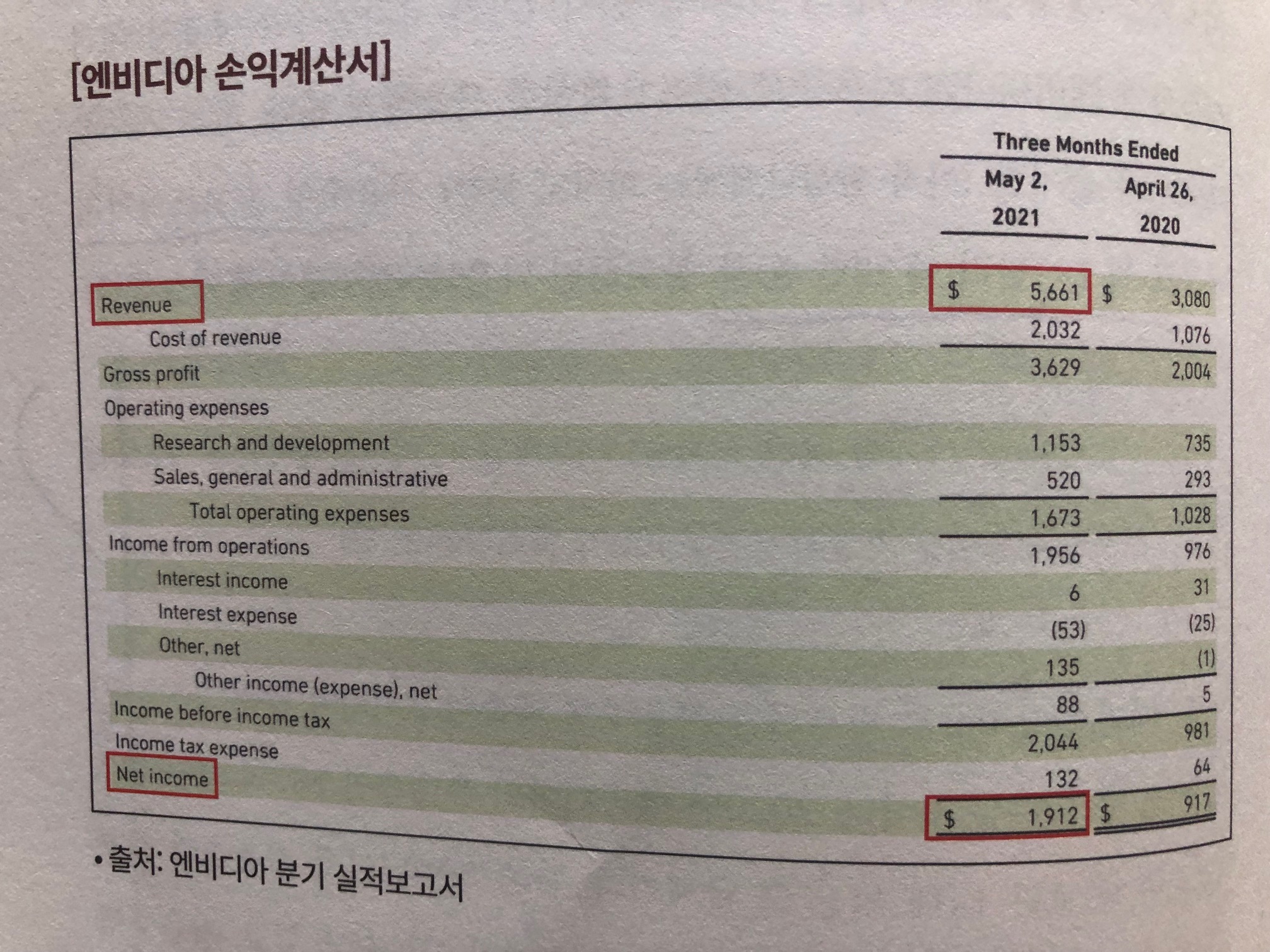 위의 그림에서 보면 엔비디아의 실적에서,