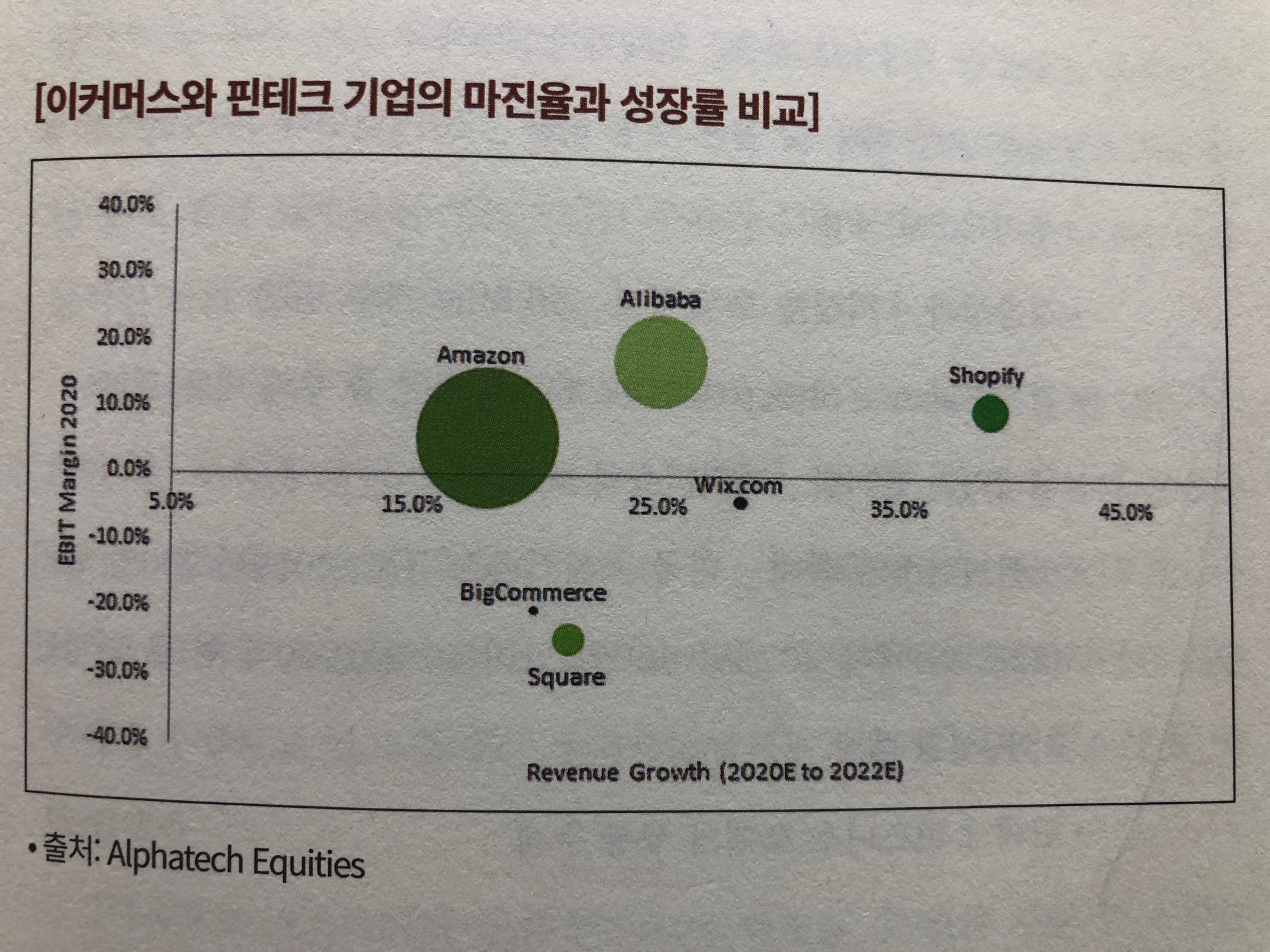 이커머스와 핀테크 기업의 마진율과 성장률 비교
