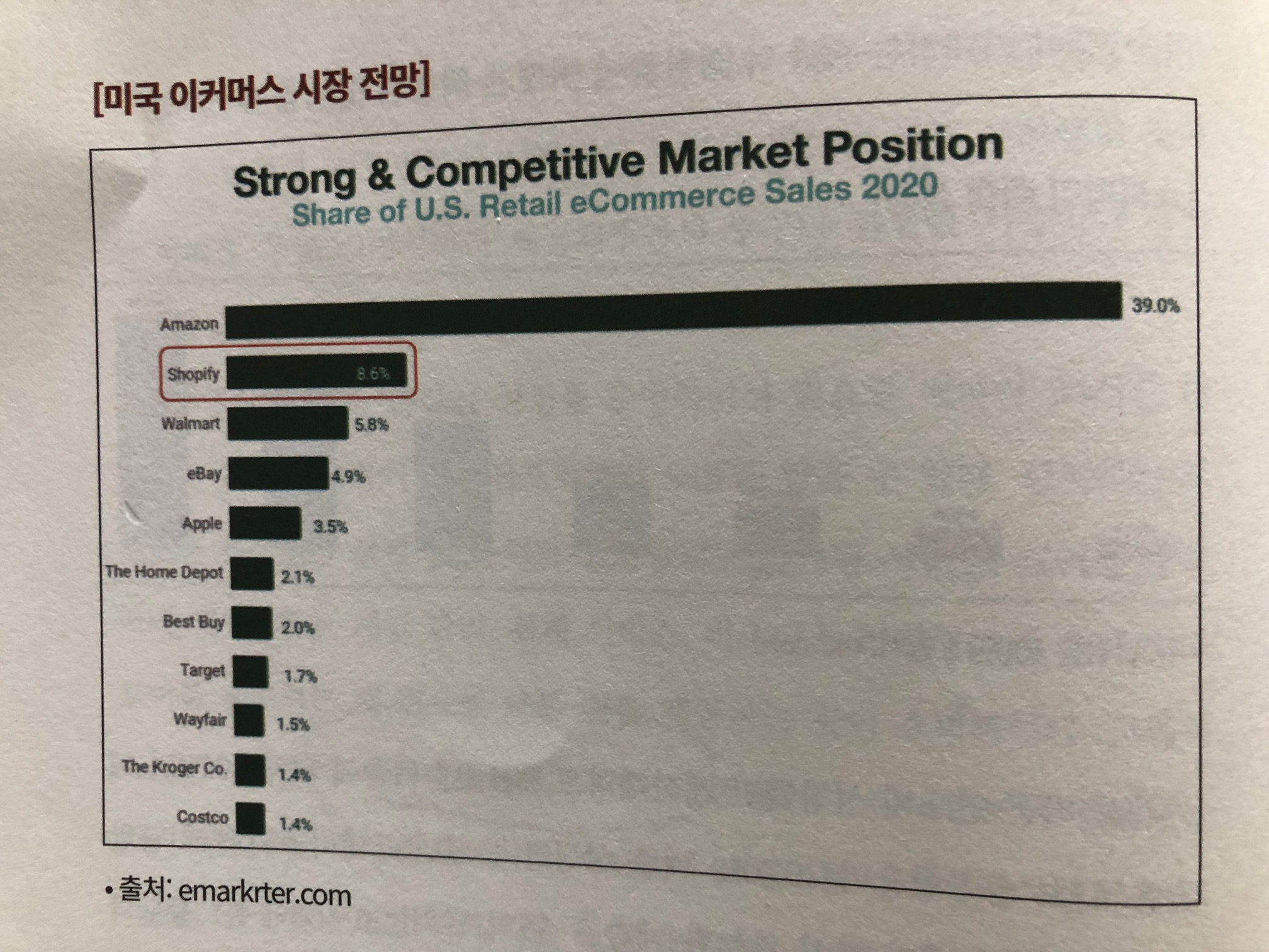 하지만, 쇼피파이의 2019년 미국 시장 점유율은 고작 5.89%였습니다. 이커머스 시장의 지속적인 확장을 생각한다면, 쇼피파이의 꾸준한 점유율 향상을 점쳐 볼 수 있습니다. 아마존을 이은 2등패도 분명히 의미가 있는 대목입니다.