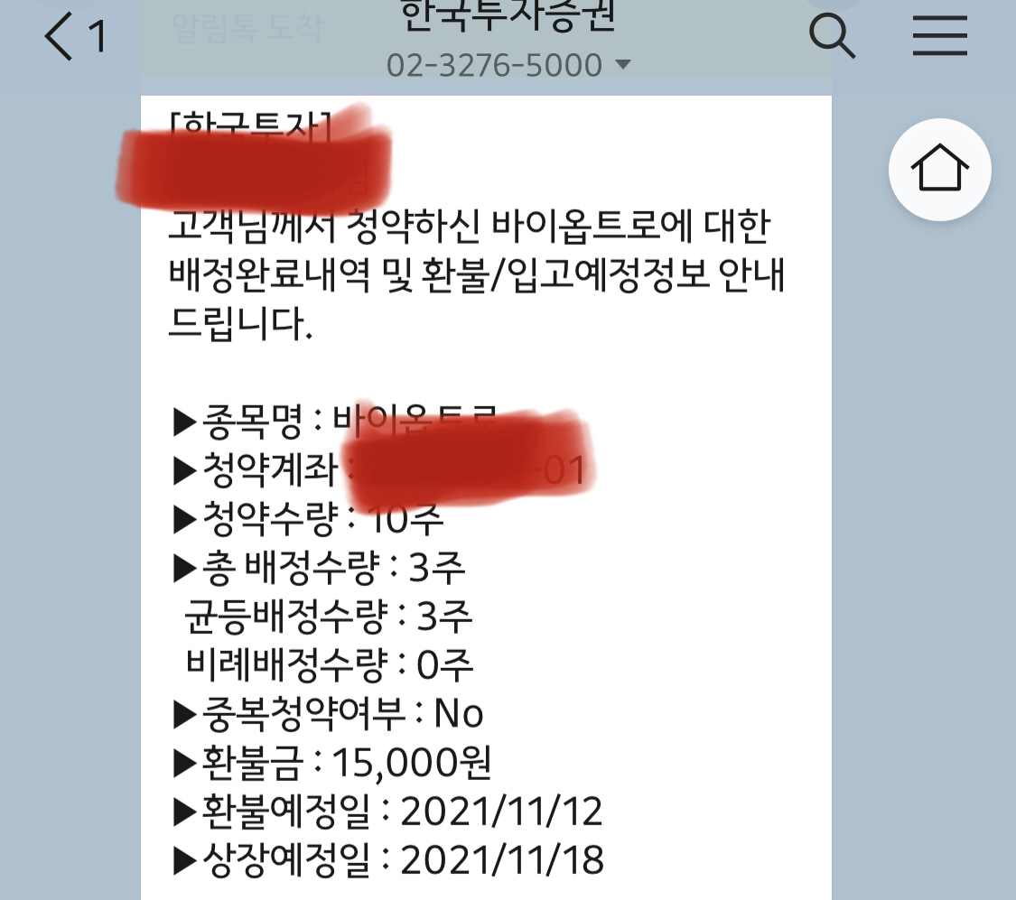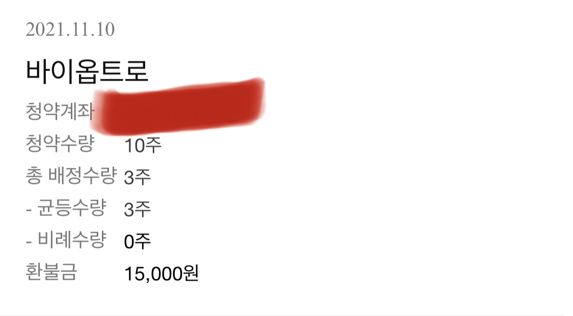 지난주였던가요? 바이옵트로 공모주청약배정결과입니다.