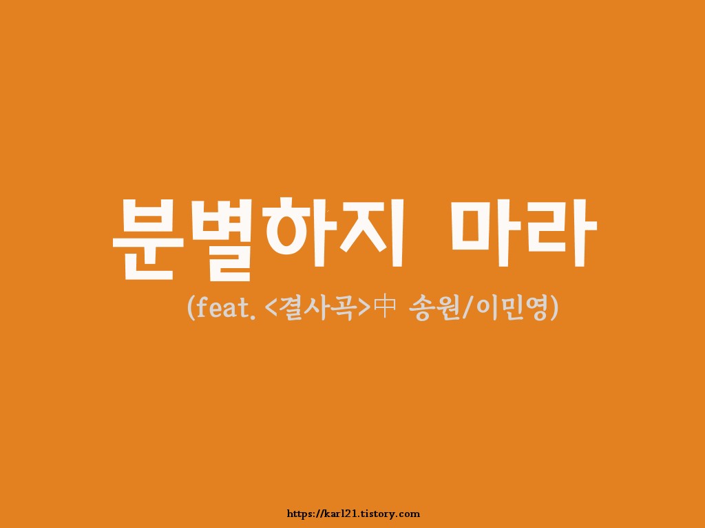 이게 ‘분별하지 마라’고 하는 문장이 참 다가왔는데, 그 대목은 예수님께서 하신 말씀처럼 ‘판단하지 마라’는 메시지와 일맥상통하는 대목입니다. 분별은 조금 더 부드럽게 입장정리를 한다면, 판단은 좀 더 냉정한 입장정리의 뉘앙스가 풍긴다고 생각합니다. 아무튼 ‘분별하지 마라’는 말이나, ‘판단하지 마라’는 문장의 의미는 일맥상통합니다.