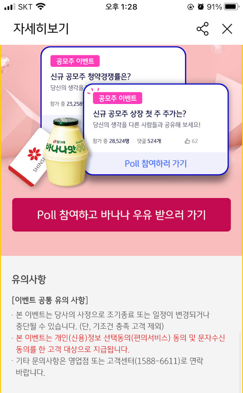 1선물: 바나나맛우유 기프트콘(참여자 중 5만명 추첨)