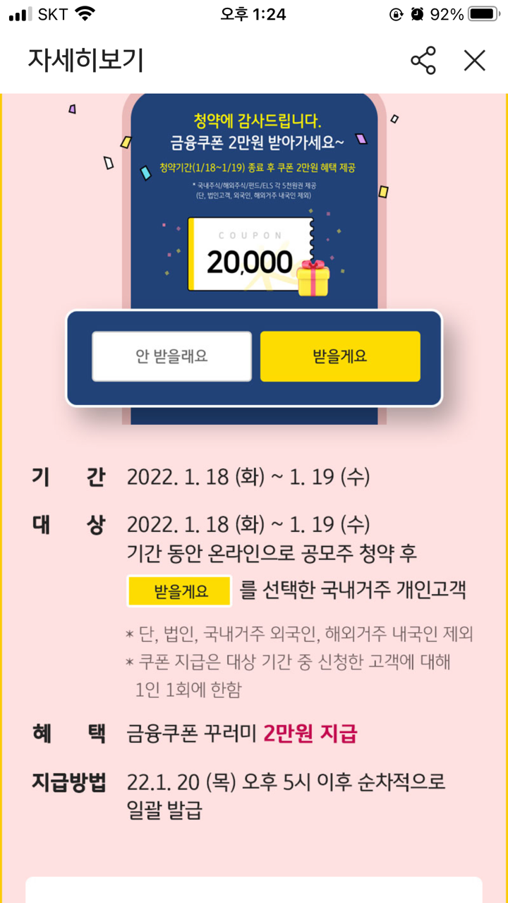 1. 청약시 2만원 금융쿠폰 증정이벤트