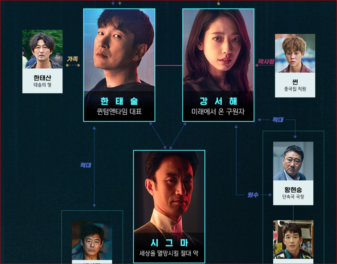 를 정주행한 후에 느낌을 적어보고자 합니다. 이 드라마는 총 16작이고, 조승우와 박신혜가 주인공으로 등장하며 악역 시그마역은 김병철이 맡았습니다. 김사장은 보면 볼수록 친근한 대한민국의 배우, 성동일이 맡았고, 썬(채종협-<알고 있지만>의 안소희를 짝사랑한 남자, 있죠?), 그리고 김서진(정혜인-드라마 <루갈>에서 루갈팀의 송미나역을 맡았죠)이 등장합니다. 이 영화가 특이한 점은 종종 전투씬이 등장하는데, 박신혜가 여전사로 등장하는데요, 게임 <배틀그라운드>느낌이 많이 났습니다. 박신혜가 들고 있는 자동소총의 분홍빛 스킨도, 권총도 그렇고. 아마 배틀 그라운드의 이미지를 차용한 느낌도 났습니다. 조승우는 과학자, 기업가이기에 박신혜가 거의 모든 액션을 소화한다고 볼 수 있는데요, 박신혜 새로운 면모를 볼 수도 있겠다 싶네요.