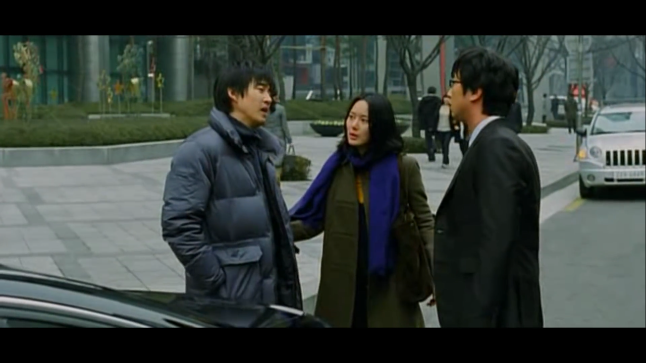 승우가 엄마의 보석상에서 지원에게 목걸이를 선물을 해주는데요. 이름은 지원이라고 부르지만, 얼굴은 명아입니다(이 대목이 자막과 함께 보지 않으면 오해의 소지가 있습니다. 저도 두번째 볼때서야 알았거든요). 갑자기 등장한 낯선 명아가 지원으로 불리고 있네요. 아마 승우의 무의식 속에선 자기가 이상적으로 여기는 지원의 모습을 딴 여자로 구현한 게 아닌가 싶은데요. 엄마의 가게에서 보석을 샀으니 당연히 가격을 지불하지 않고 나가려는데, 직원이 붙잡습니다.