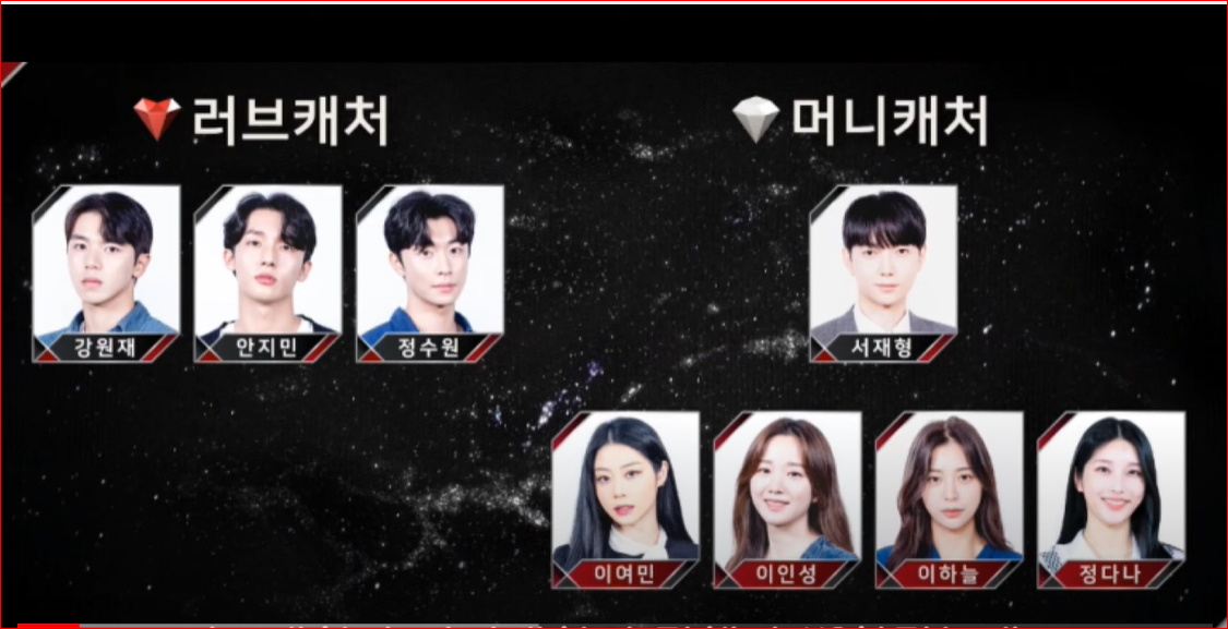 제가 이 프로그램을 얼핏 보고서 외국의 데이팅프로그램의 모방한 것을 알 수 있었습니다만, 뭐 그게 중요합니까? ‘모방은 제2의 창조’라는데요. 암튼 처음에 출연할 때 자신이 5,000만원을 돈이 목적인 ‘머니캐쳐’인지? 아니면 ‘러브캐쳐’인지를 정한다고 합니다. 그리고 프로그램 중간에 변할 수도 있으니 변경할 수 있는 기회를 준다고 하긴 합니다. 선남선녀가 등장해서 5 VS 5 커플매칭프로그램이 시작되는데요, 중간에 탈락자가 있고 새로운 멤버가 충원되기도 했습니다. 이 프로그램이 바로 <러브캐쳐 인 서울>인데요, 이게 2여년만에 시즌3가 나왔다고 합니다. 원래 엠넷에서 방송했는데, 이번에 tving으로 옮겼다고 합니다.
