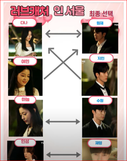 여기서 주목할 만한 커플은 ‘하늘 VS 수원’은 처음부터 끝까지 롱런커플이었습니다. ‘다나 VS 원재’도 교감이 있었고요.