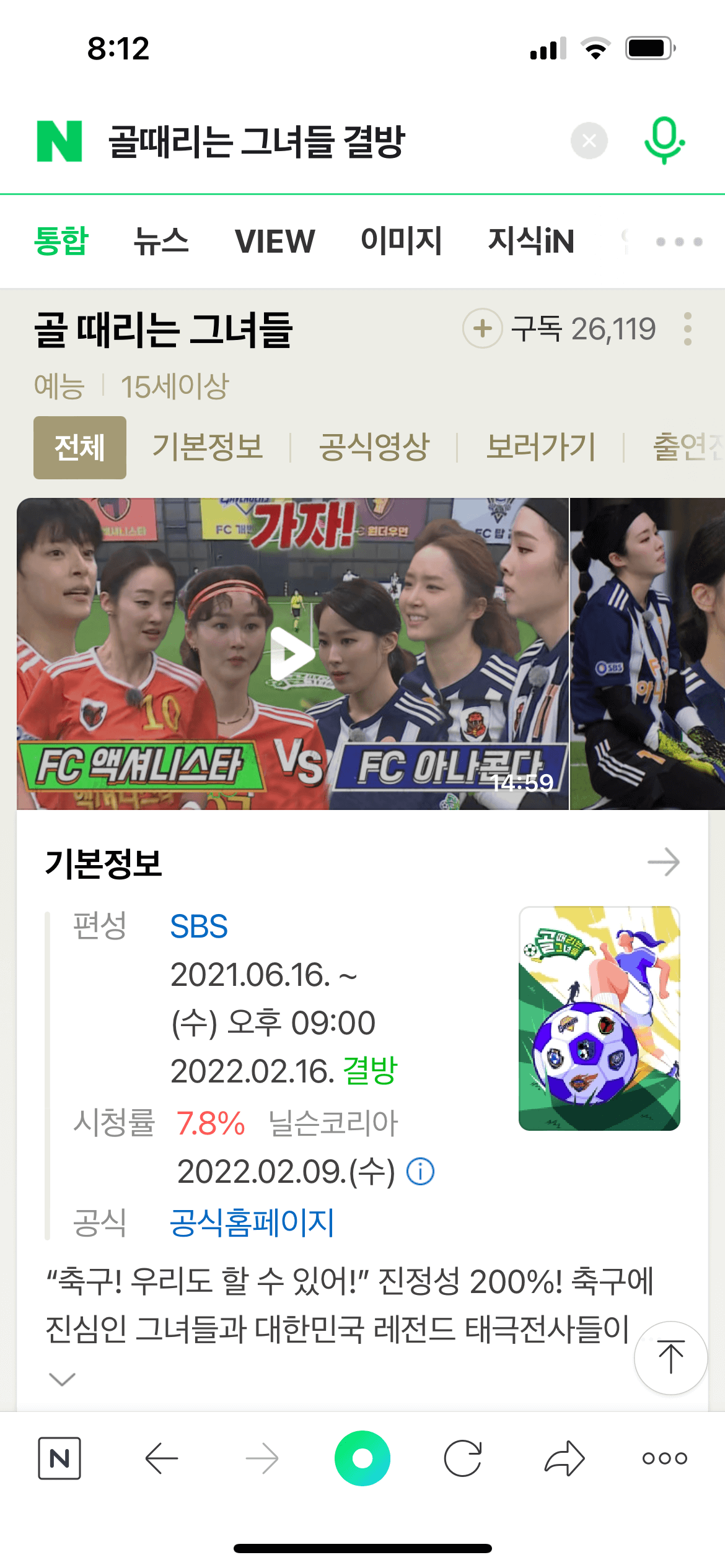 그나저나 <골때녀> 안하네 아쉽다 이건 진정 팬심인가??? 아재 분노를 삭히는 중^^