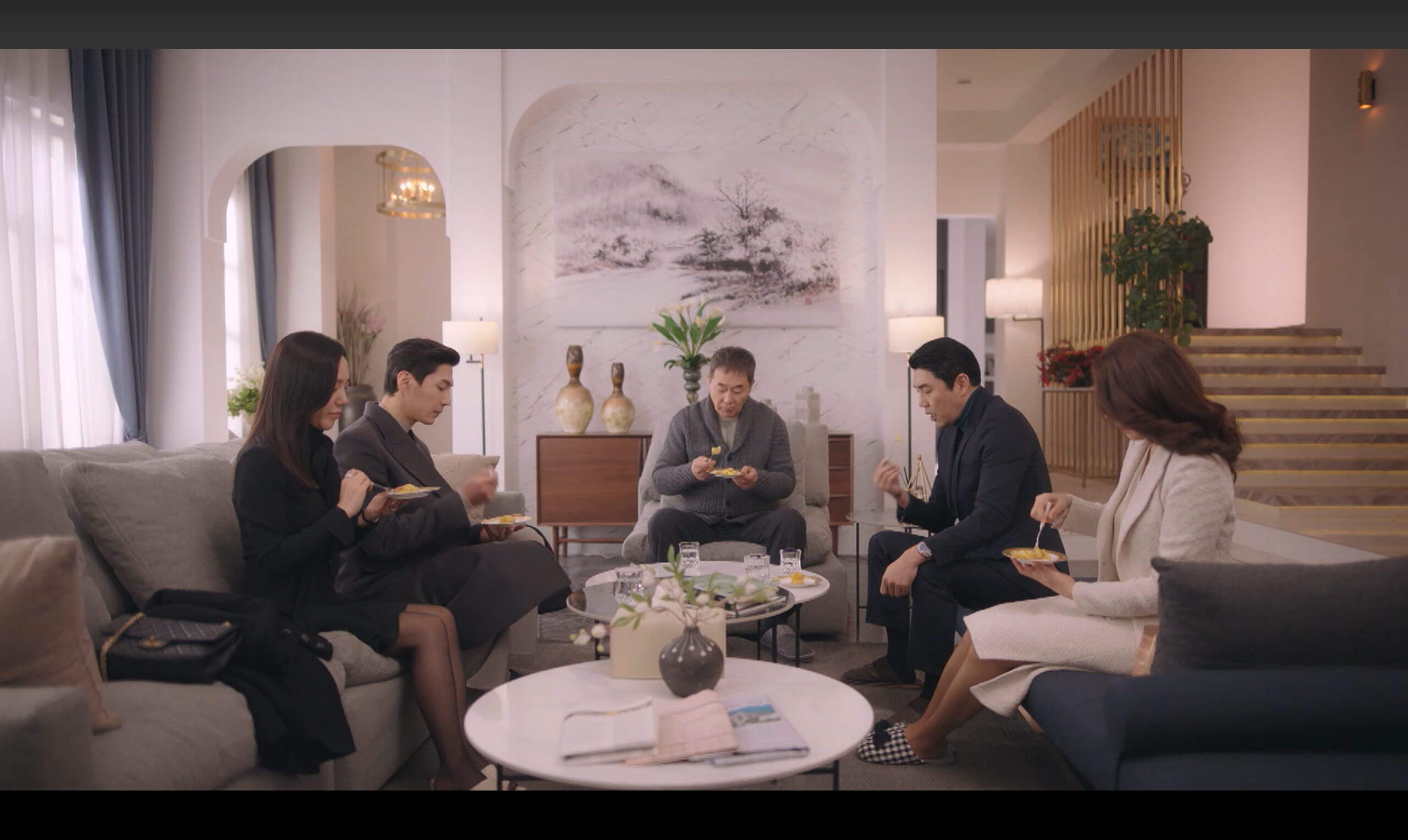 그러면서 49재 끝나면 바로 결혼하라는 이야기를 합니다. 서동마와 사피영이 부친의 집을 찾아와 인사를 하는 자리에서 사피 영은 천연재료 아이스크림을 사 오는 센스를 보여주면서 동마의 부친의 마음을 들게 합니다. 오히려 부친은 서반의 아이들이 서동마와 사피영 부부를 바라보는 시선까지 걱정하는 우려를 보여줍니다. 아무래도 전 처의 자식 서반보다는 후처의 서동마를 더 생각하는 건지도 모르겠습니다. 아비의 입장에선 41살의 사피영과 결혼하는 젊은 아빠, 동마를 심사숙고하는 태도인 듯합니다. 서반과 이시은 커플도 같이 오라고 해서 부친의 집을 방문하는데, 갑작스러운 아내의 죽음에 황망해하며 불면과 술로 지내 예비 시부를 위한 이시은의 준비물은 ‘군고구마’였습니다. 방송국에서 한솥밥을 먹은 이시은과 사피영의 죽은 같은 식구의 울타리 안으로 들어가면서 케미가 더 빛을 발하는 느낌입니다. 그런 가운데 부친이 서반 커플과 서동마 커플에게 ‘들어와서 살어’라고 제언을 합니다. 이시은과 사피영은 좋아요 라고 하는데요, 서반만큼은 아무런 대답도 하지 못하고 있습니다. 서반은 불편하겠죠. 그래도 예비 며느리들의 파이팅이 좋습니다! ^^